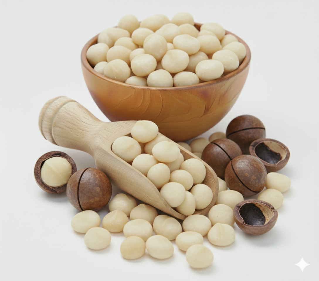 Premium macadamia nuts with a rich, buttery flavor and smooth crunch, ideal for snacking, baking, and food manufacturing.